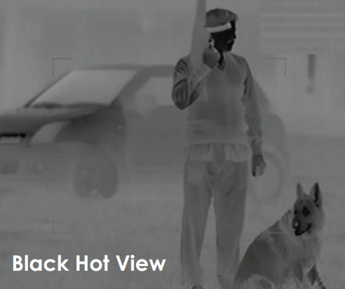 Black Hot mode displays heat signatures as darker shades, making it easier to identify shapes, terrain details, and human silhouettes. This is especially effective in high-temperature environments and long-range target observation.