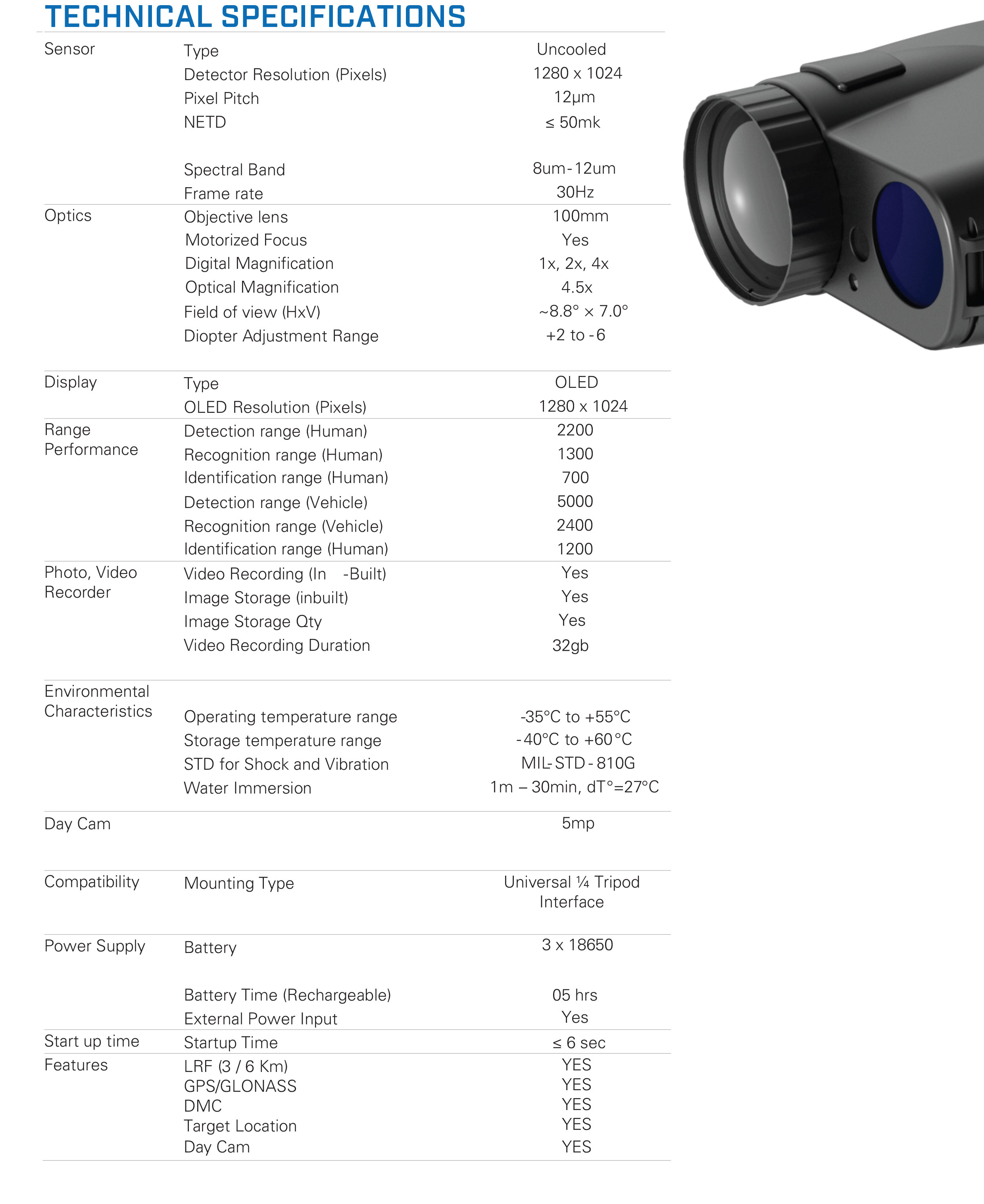 The integrated class 1, eye safe precision laser range finder allows tactful and timely detection and assessment of target in all conditions