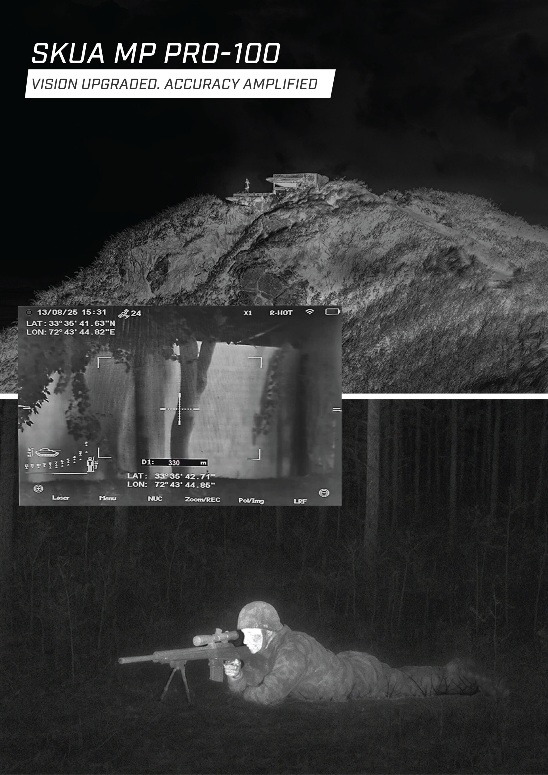 The integrated class 1, eye safe precision laser range finder allows tactful and timely detection and assessment of target in all conditions