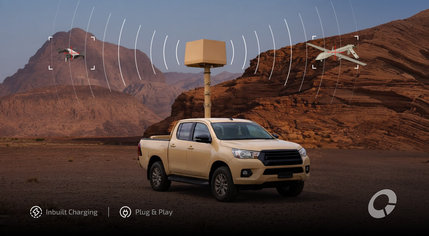 3D X-Band radar delivers persistent 360° surveillance and micro-UAV detection across a 2-5 km range.